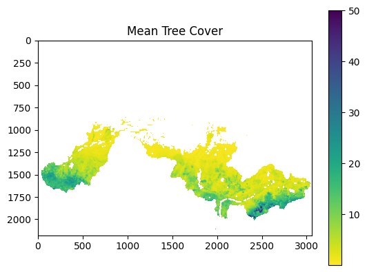 Downloads annual MODIS VCF tree cover, clips to the study area, and resamples to the DEM grid so it aligns with all other rasters.