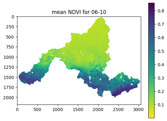 Downloads 16-day NDVI composites, clips to the basin, and resamples to the DEM grid.