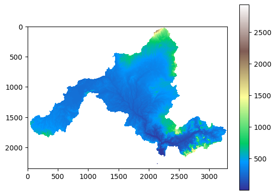 Downloads a DEM (default 1 km), clips to the basin, and reprojects to match the project grid.